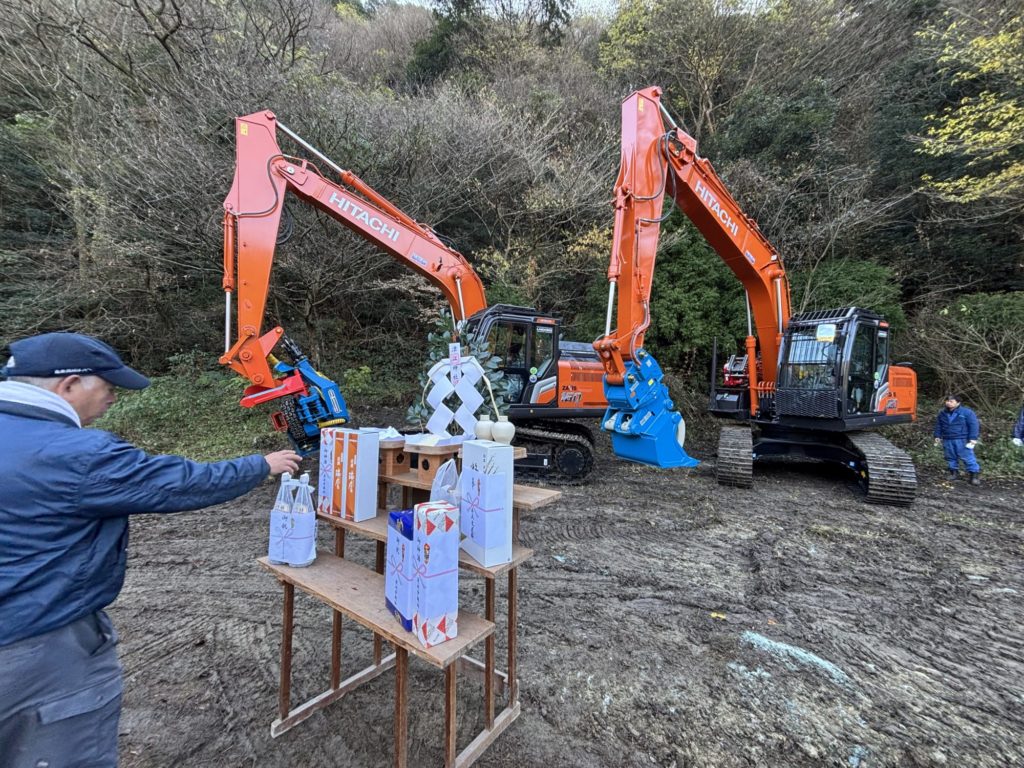 納車当日には、機械を納めた現場にて、安全と作業の無事を願う祈願が行われました。